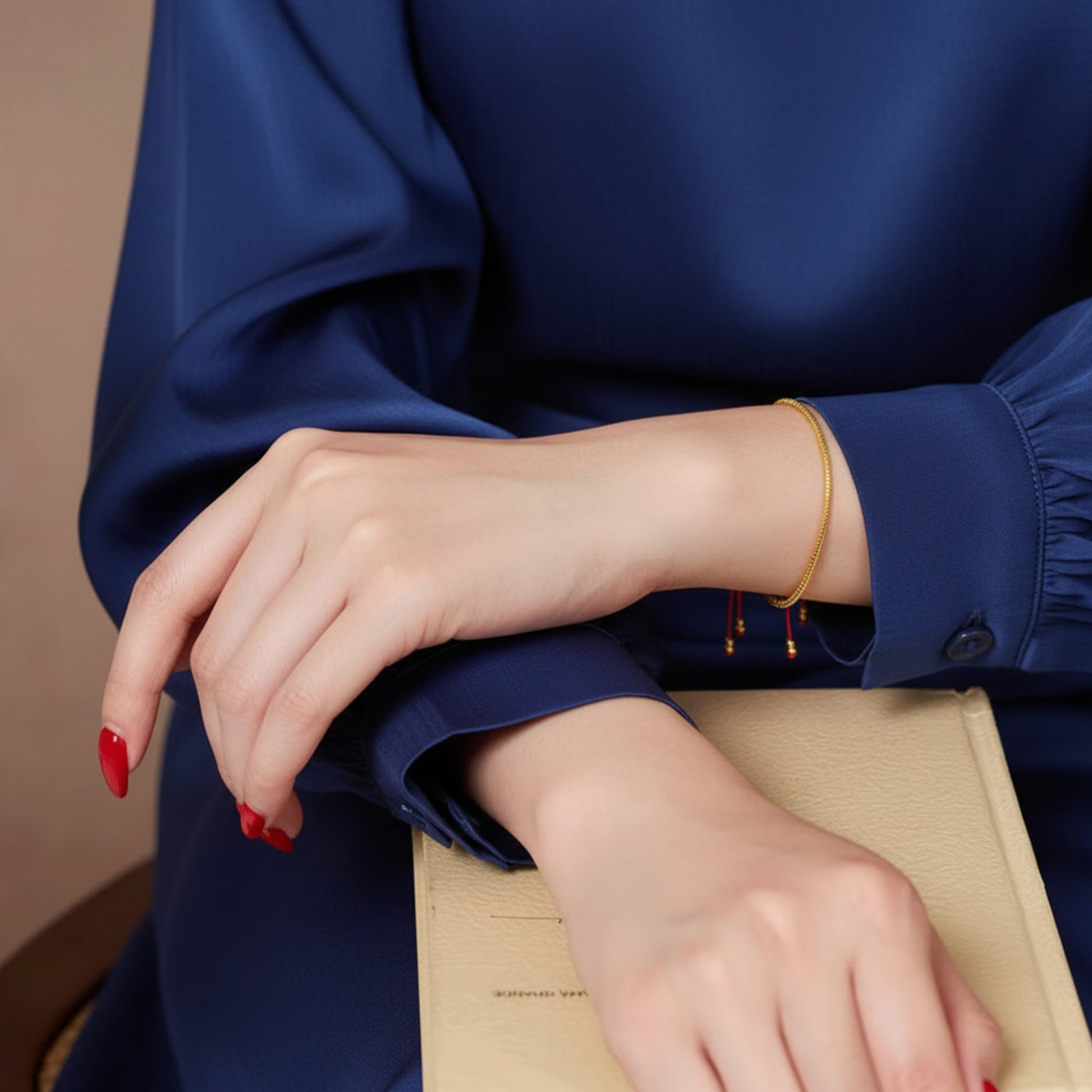 24K Real Gold Beads Charm Red Braided Rope Bracelet