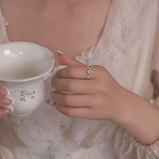 24K Real Gold Blue Water Drop Topaz Moissanite Rococo Style Proposal Ring
