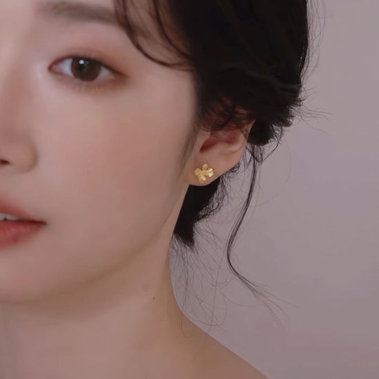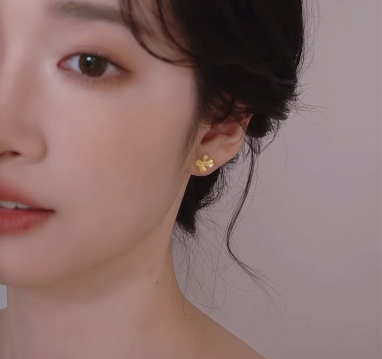 24k Real Gold Butterfly Flower Trendy 5G Gold Stud Earrings