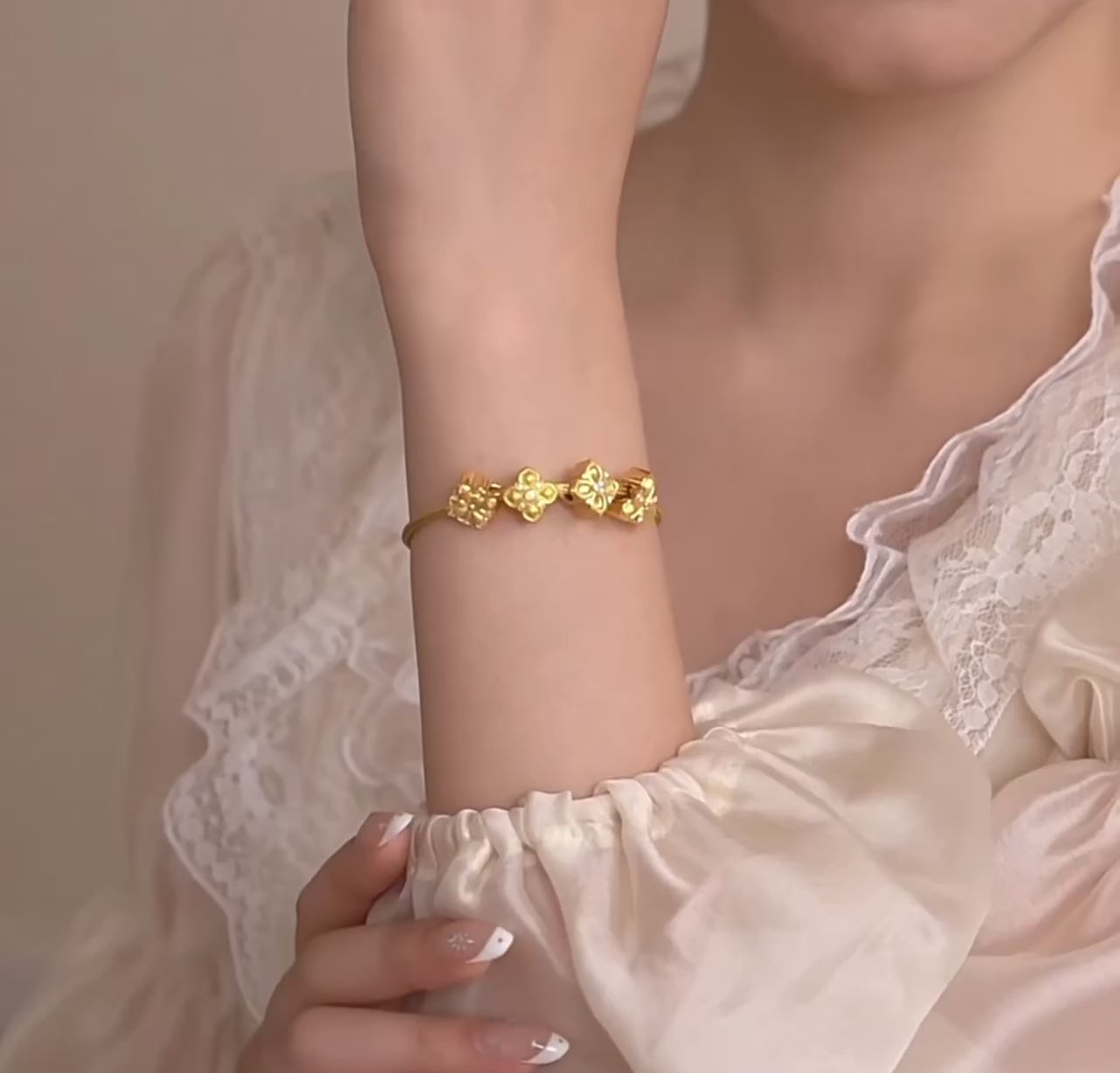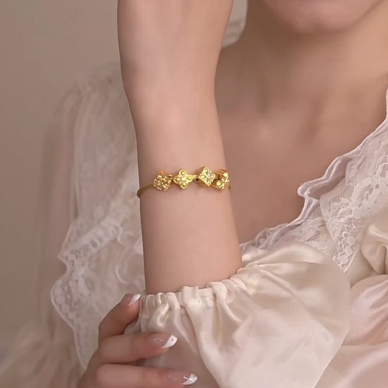 24k Real Gold Charm Zircon Clover Flower D.I.Y Pendant
