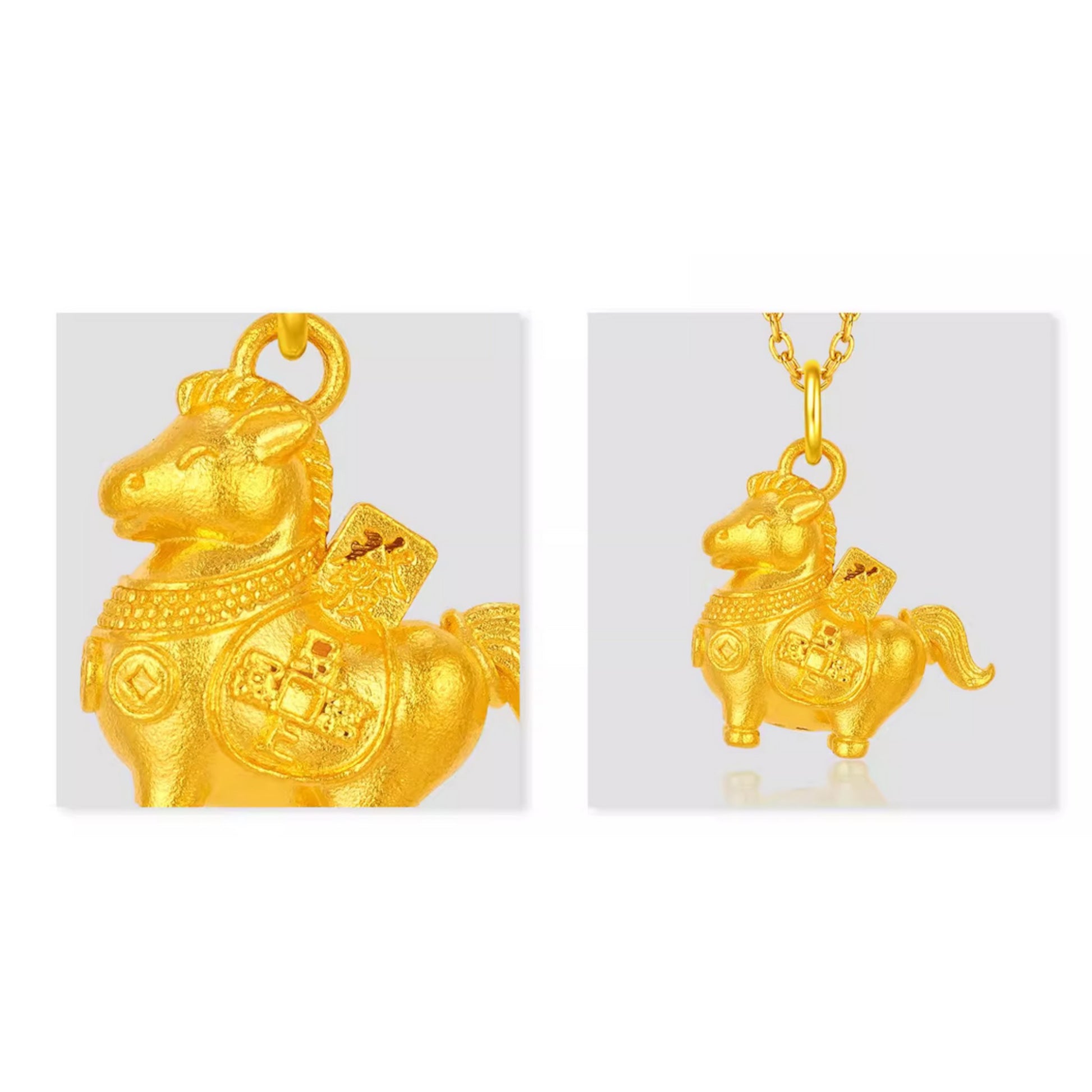 24K 999 Gold Chinese Zodiac Bring Wealth Horse Pendant
