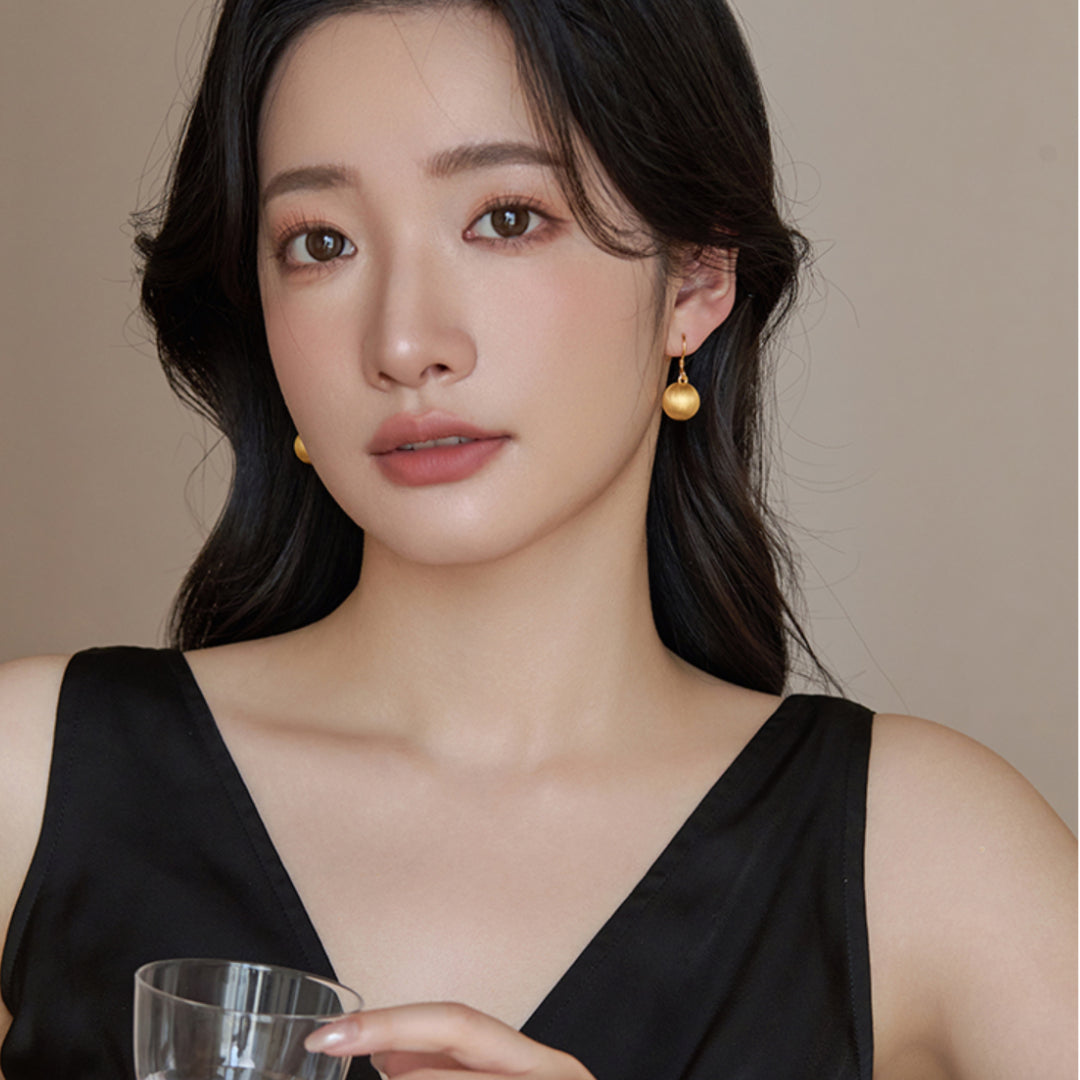 24K Real Gold earrings 5D Hard Gold brushed gold Ball Hoop Earrings