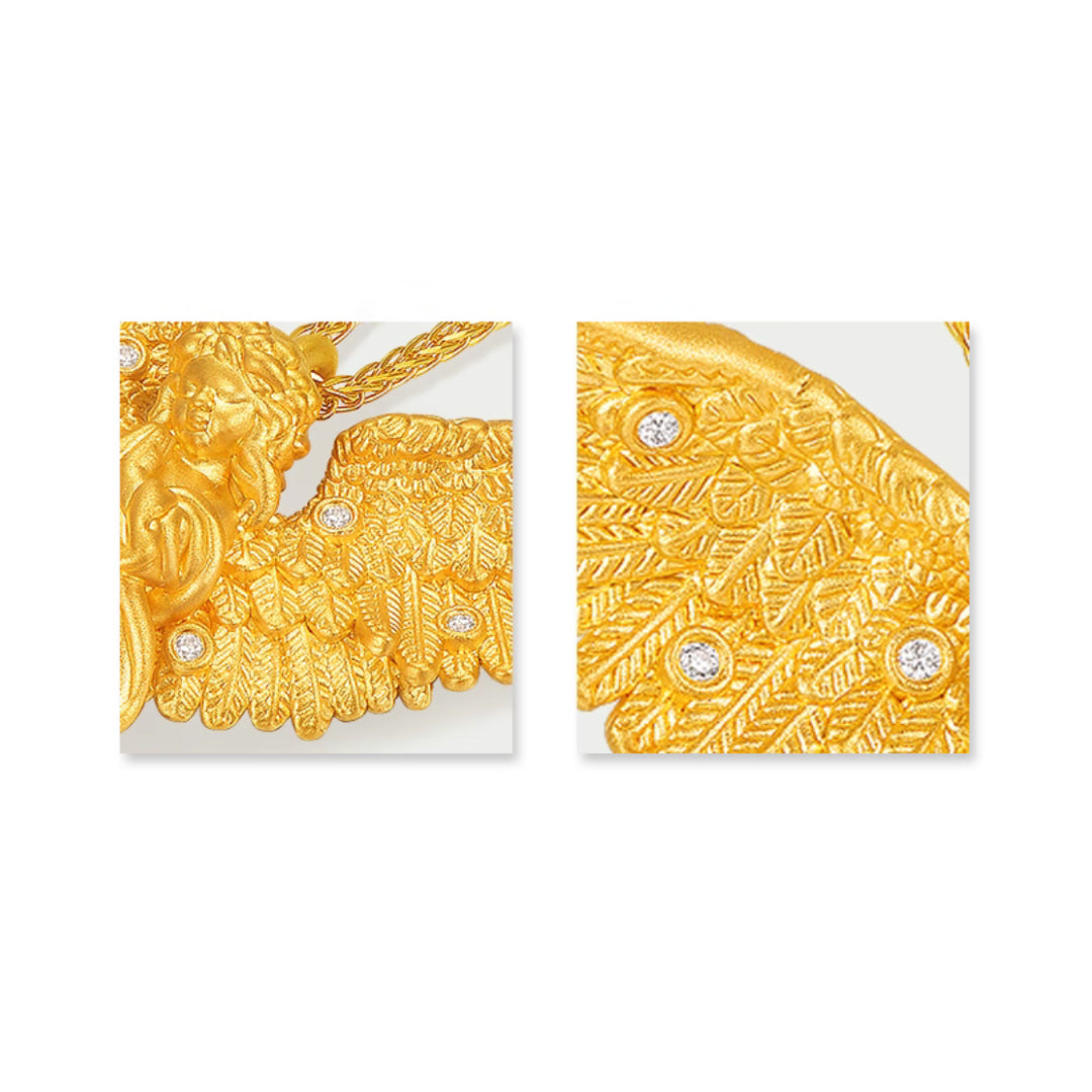 This 24K Real Gold Eternal Zircon Wing Angel Pendant combines timeless elegance with expert craftsmanship. Crafted from genuine 24-karat gold, it features delicately detailed angel wings accented by sparkling zircon stones, symbolizing protection and eternal grace. Its refined design ensures both lasting beauty and a meaningful accessory that complements sophisticated style. Ideal for collectors and connoisseurs seeking a luxurious, symbolic piece with enduring shine.