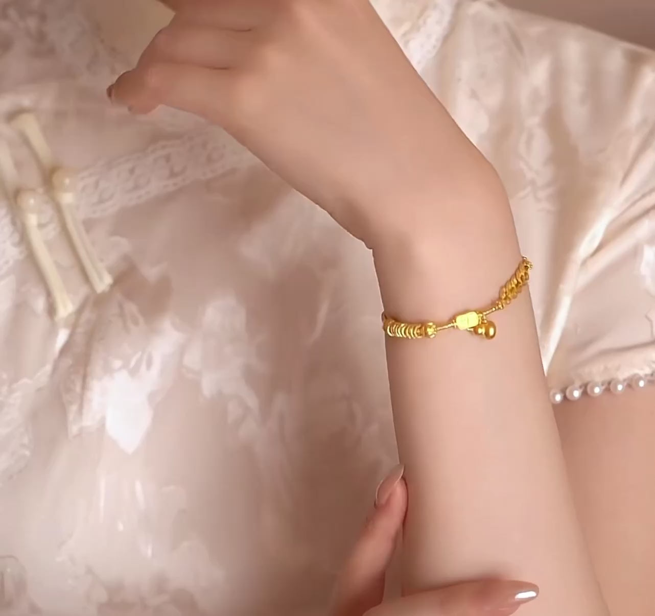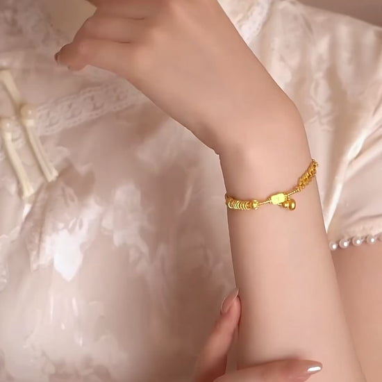 24K Real Gold Five Elements Blessing Coin Bring Wealth Gourd Gold Bracelet