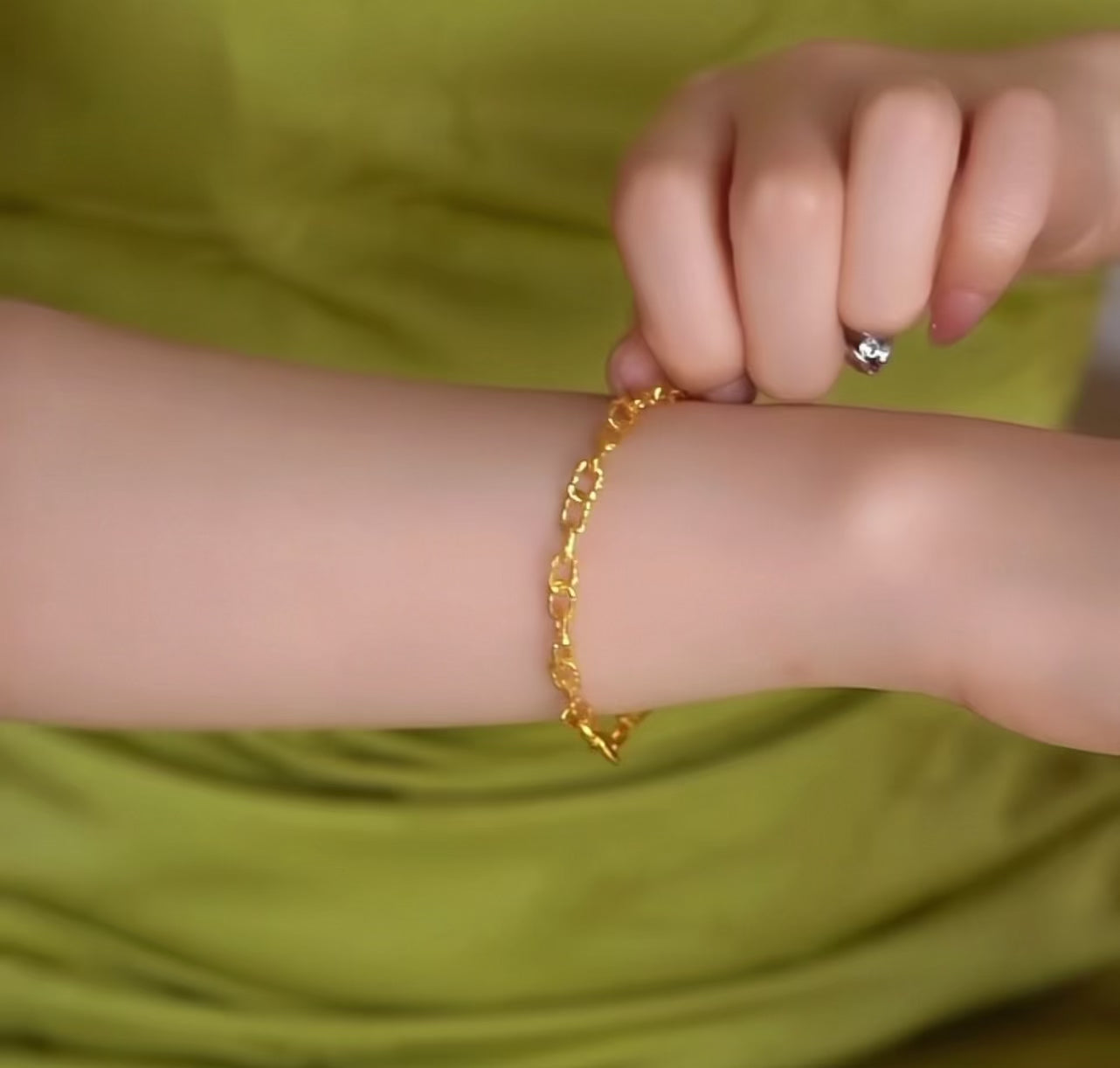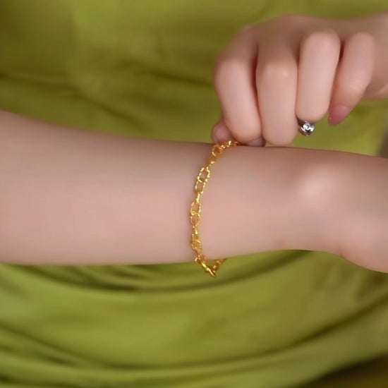 24K Real Gold Handmade Hammered Pattern Chain Link Bracelet