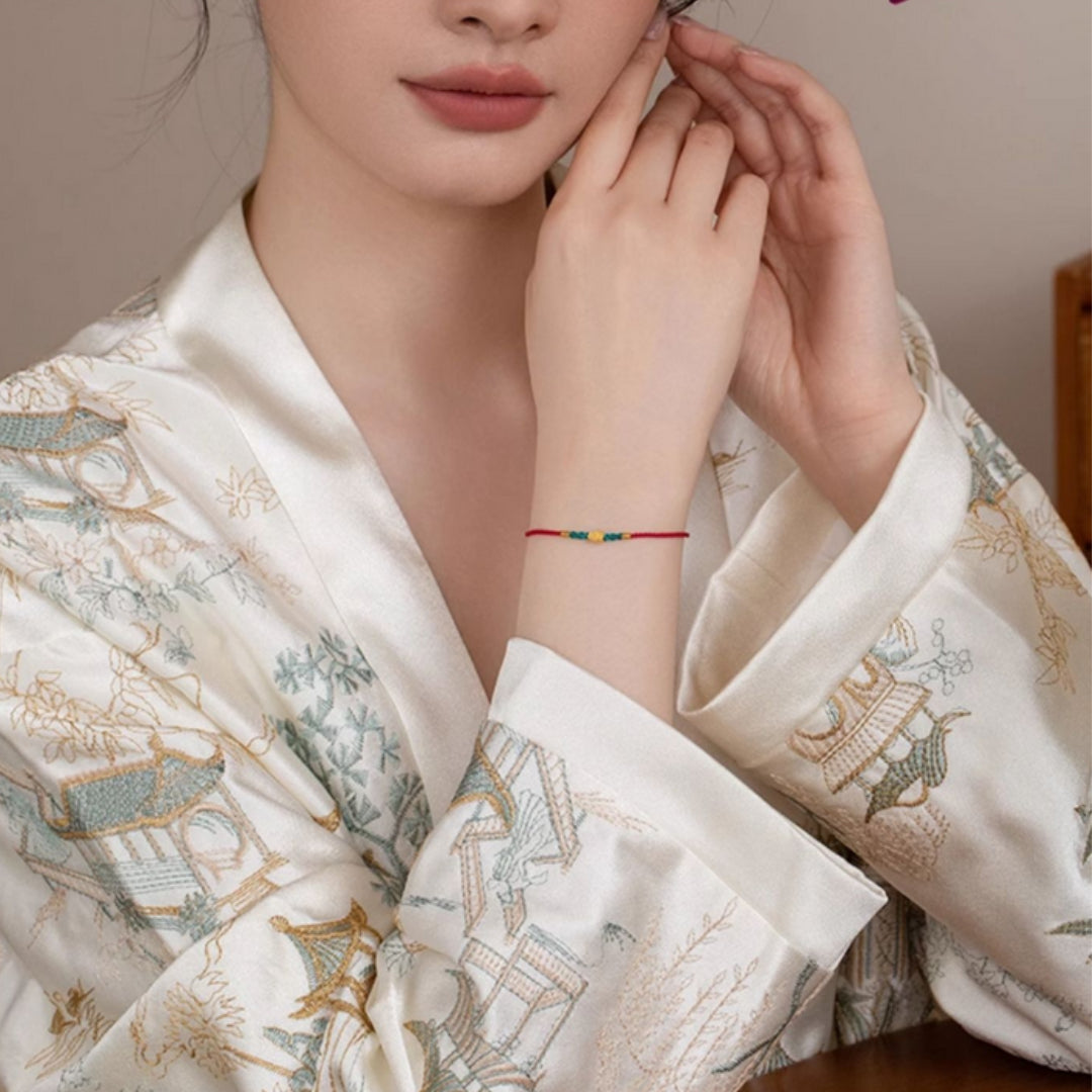 Crafted with 24K real gold, this Lucky Gourd pendant symbolizes prosperity and protection. Suspended on a durable red braided rope bracelet, it combines traditional symbolism with contemporary design. The vibrant red rope enhances energy balance, making this piece both a meaningful talisman and a stylish accessory for daily wear.