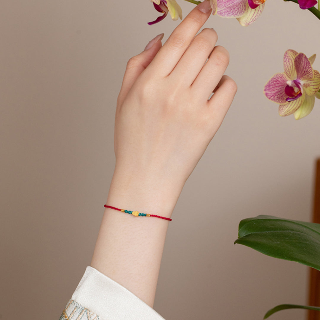 24K Real Gold Lucky Gourd with Red Braided Rope Bracelet