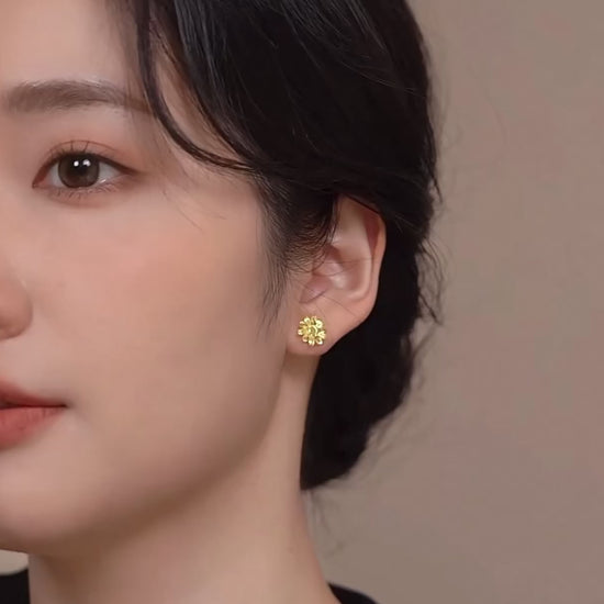 24K Real Gold Shining Sunflower Scale Pattern Stud Earrings