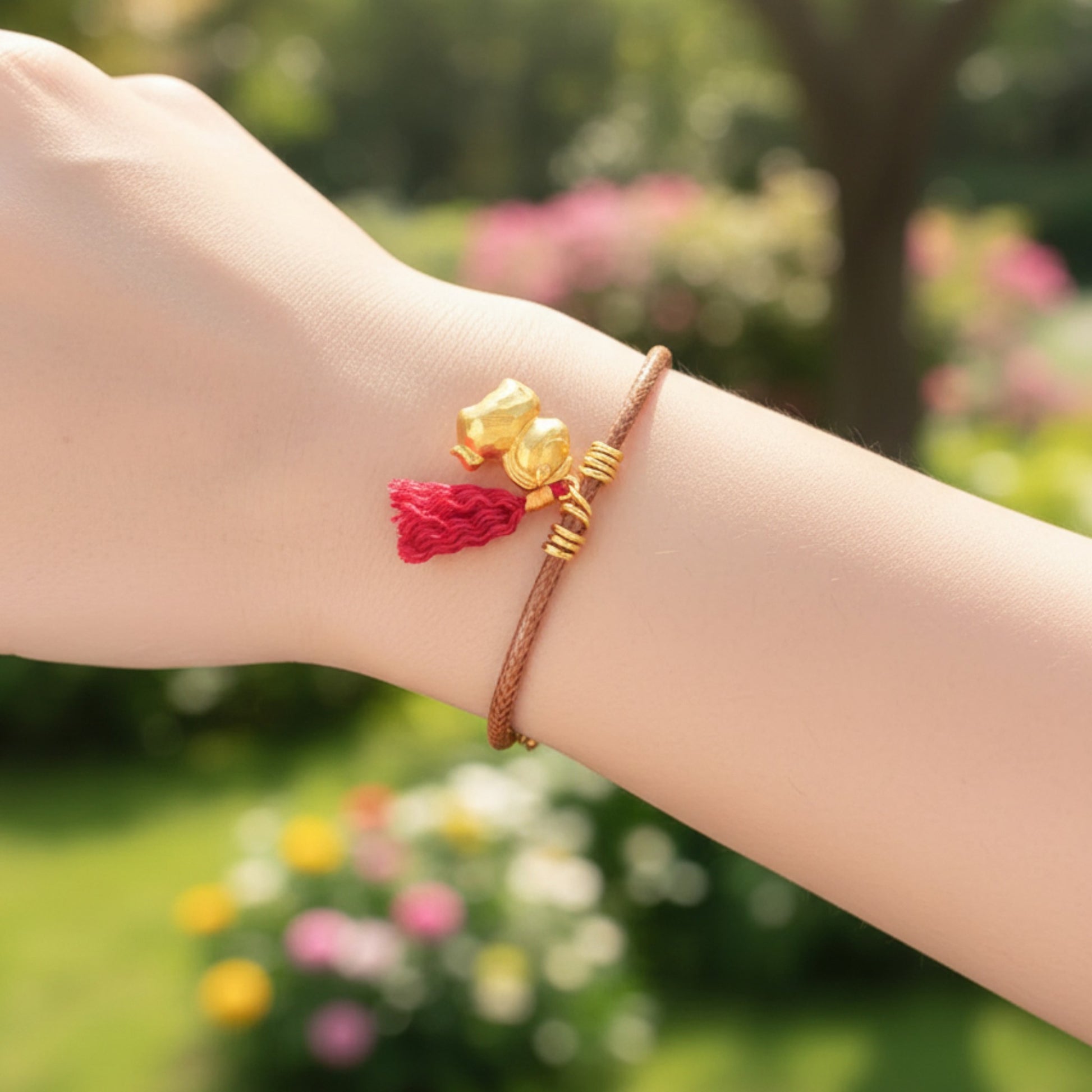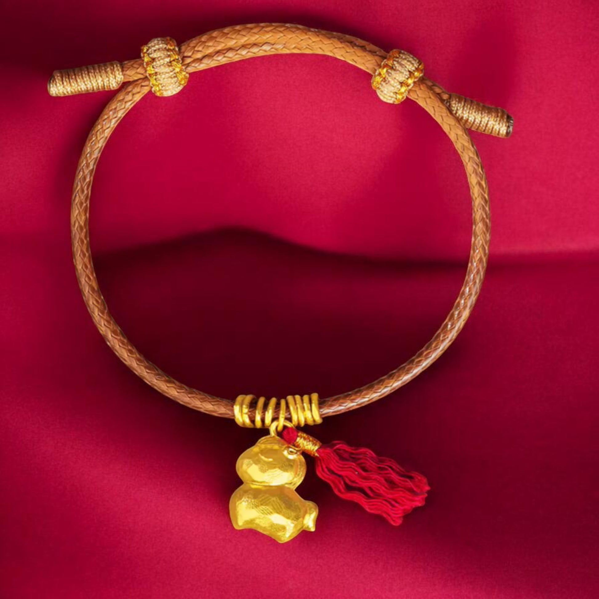 24k Real Gold Zodiac Year of Horse with Tassel Pendant Bracelet