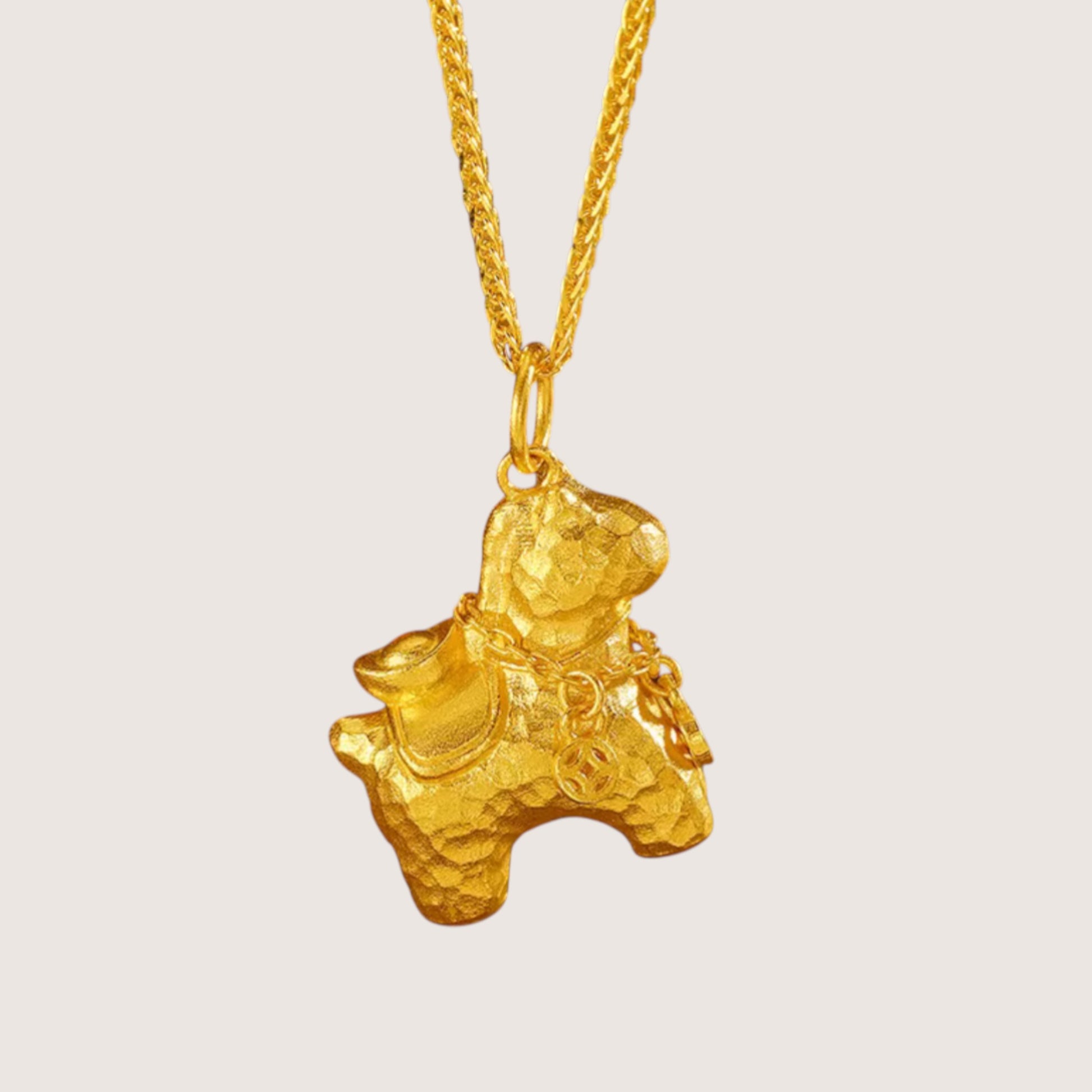 24k Real 999 Gold Zodiac Year of Horse Tassel Pendant
