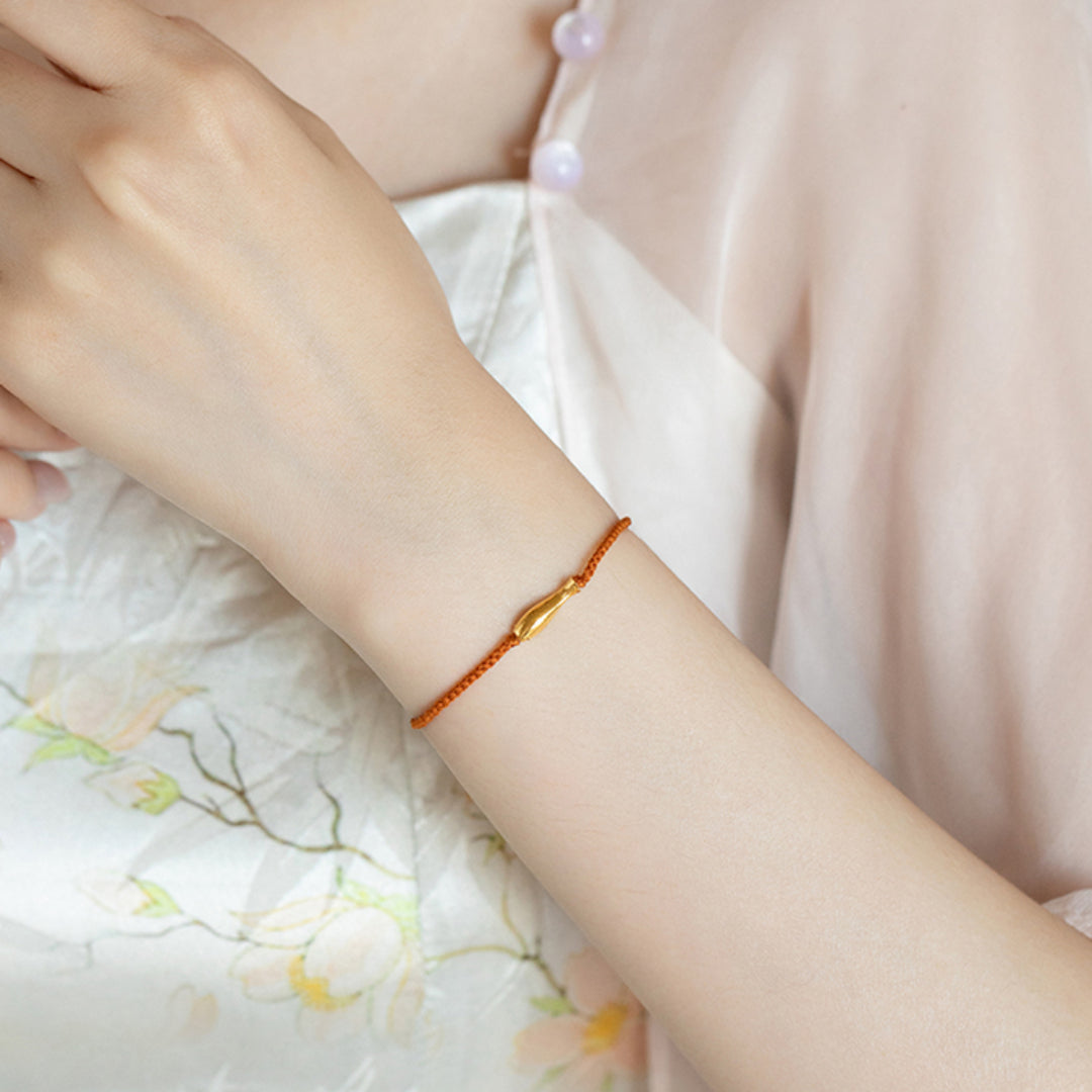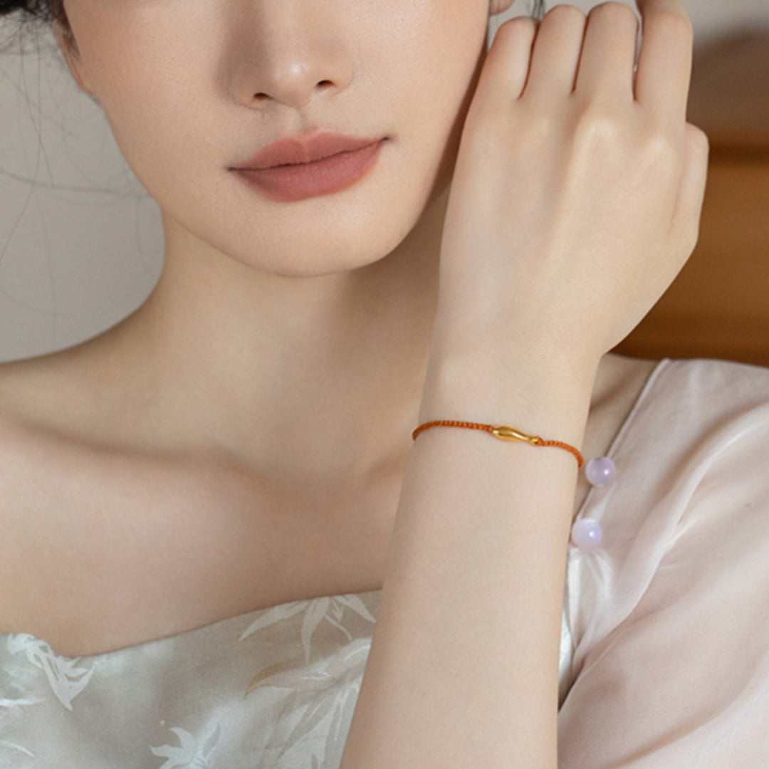 24K Real Good Lucky Fish Charm Rope Braided Bracelet