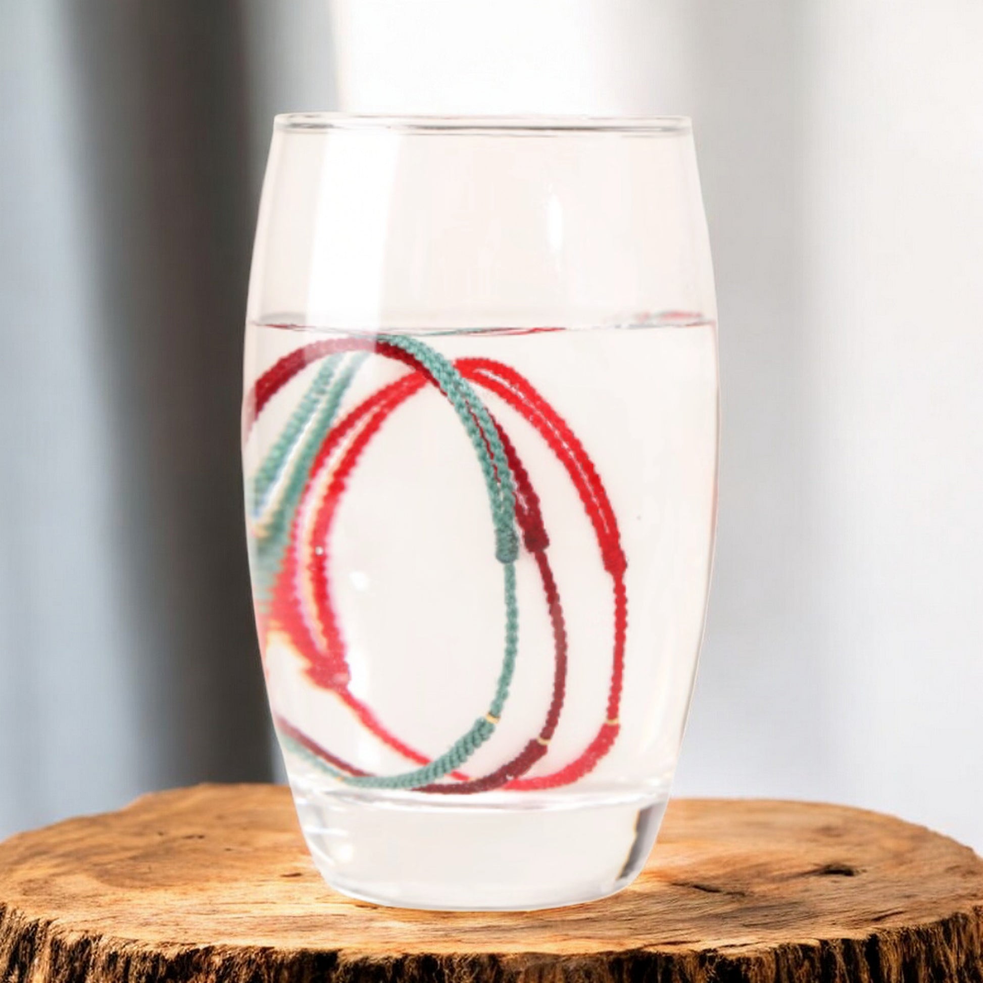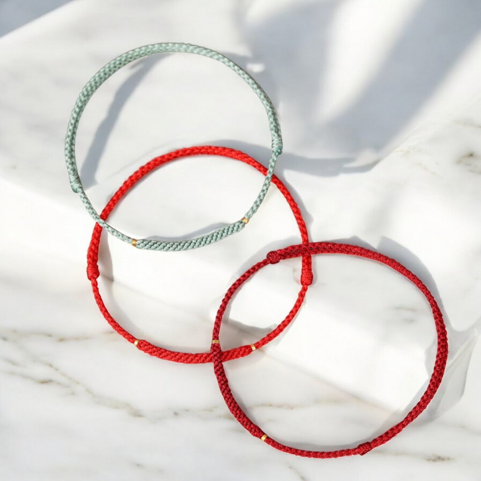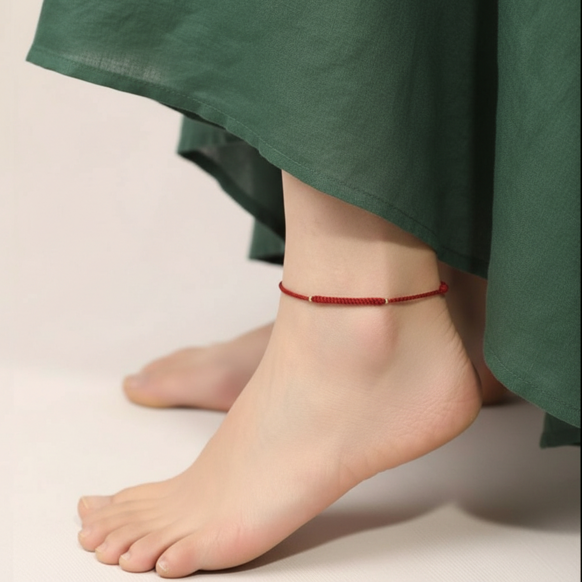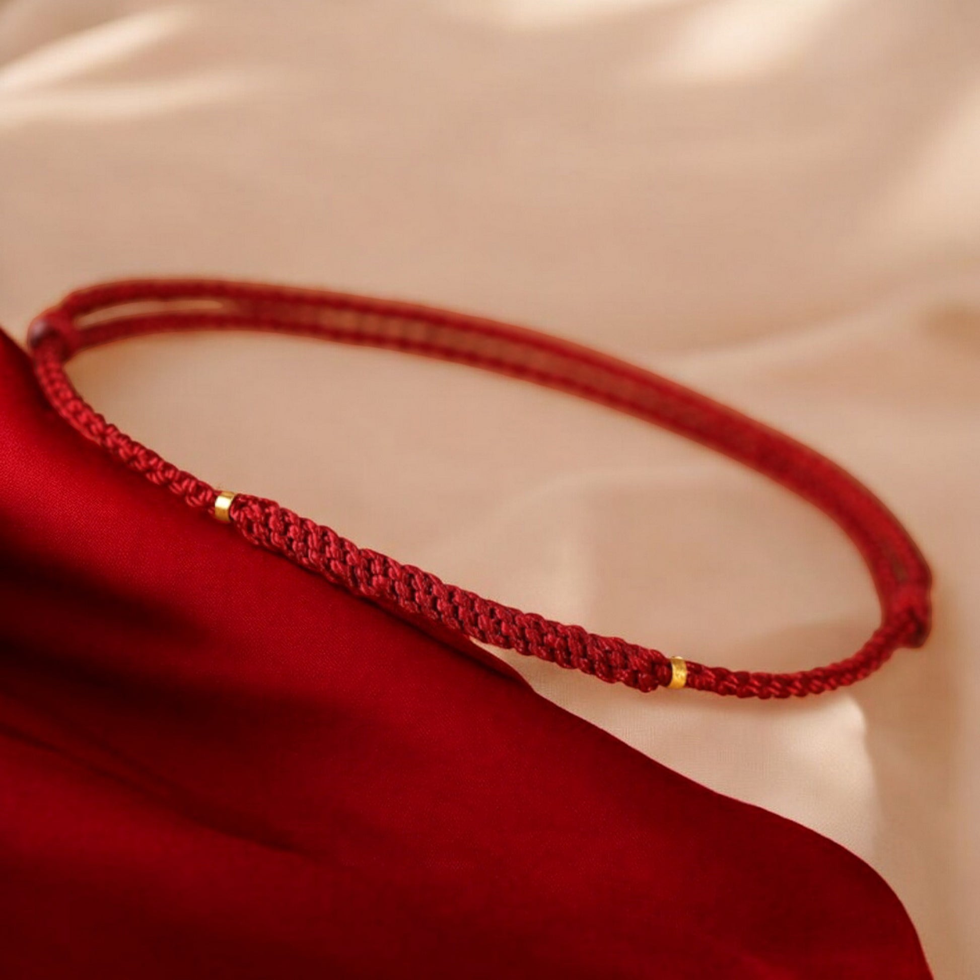 This delicate anklet combines traditional craftsmanship with timeless symbolism. Handwoven from fine red string and accented with 18k gold elements, each piece is individually braided to ensure quality and uniqueness. The red cord carries centuries of cultural significance as a symbol of protection and good fortune, while the precious metal detailing adds understated elegance. Perfect for layering or wearing solo, this versatile accessory transitions seamlessly from everyday wear to special occasions. A meaningful gift or personal talisman that honors both artisanal tradition and contemporary style.