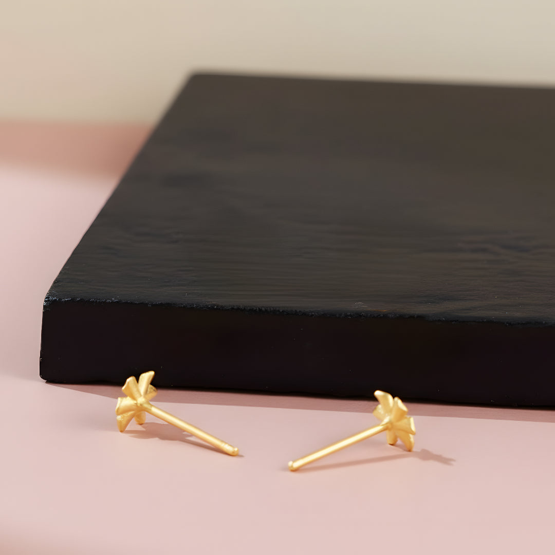 24K Solid 999 Gold Hand-Carved Craft Daisy Flower or Lily Flower Stud Earrings