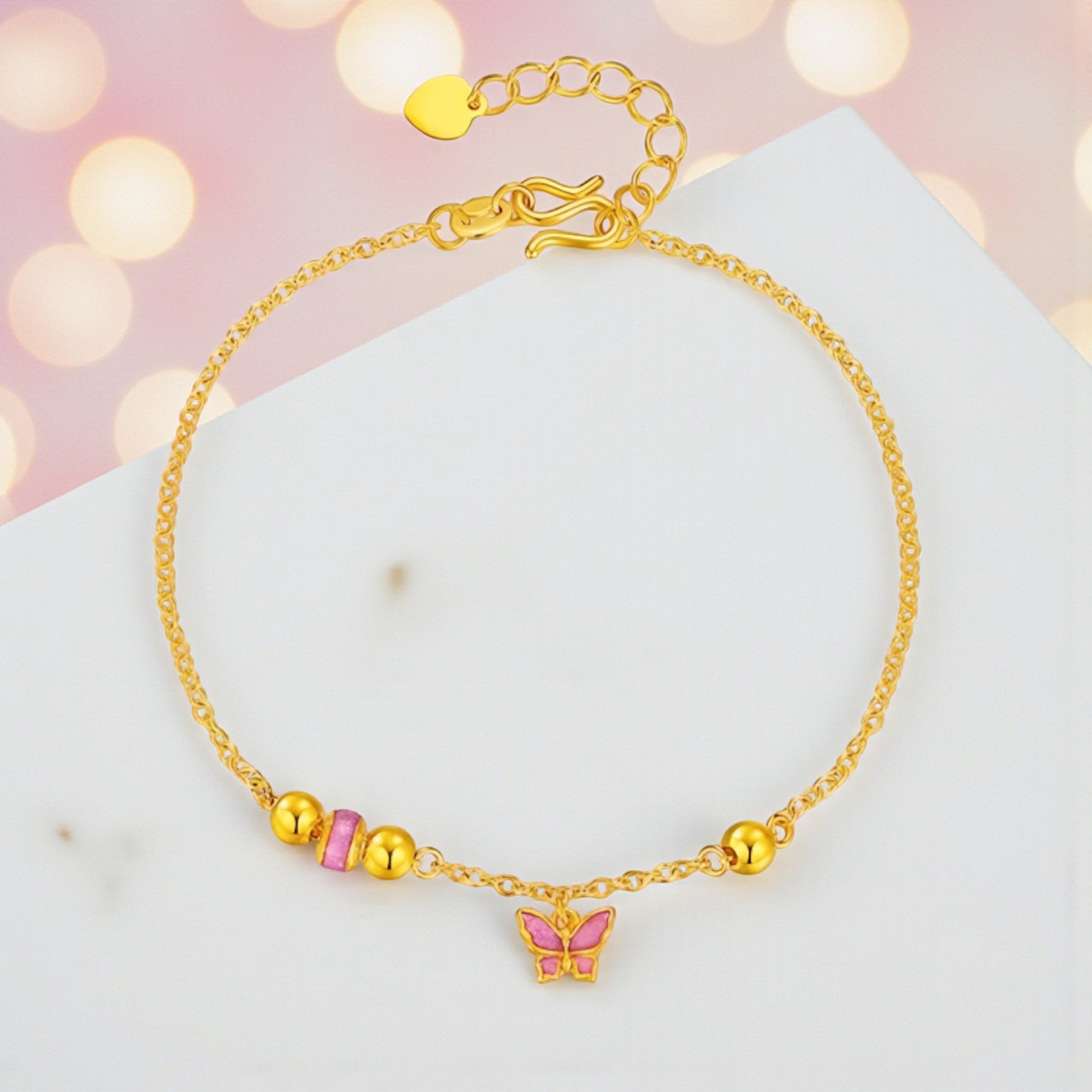 24K Gold Beads Enamel Butterfly Charm Bracelet