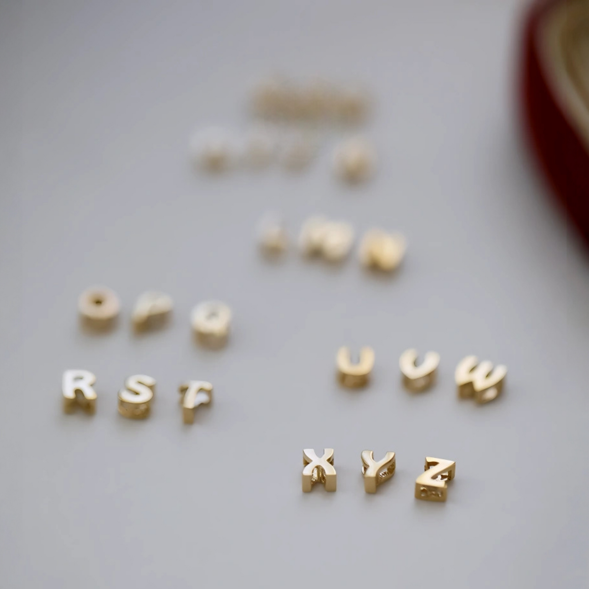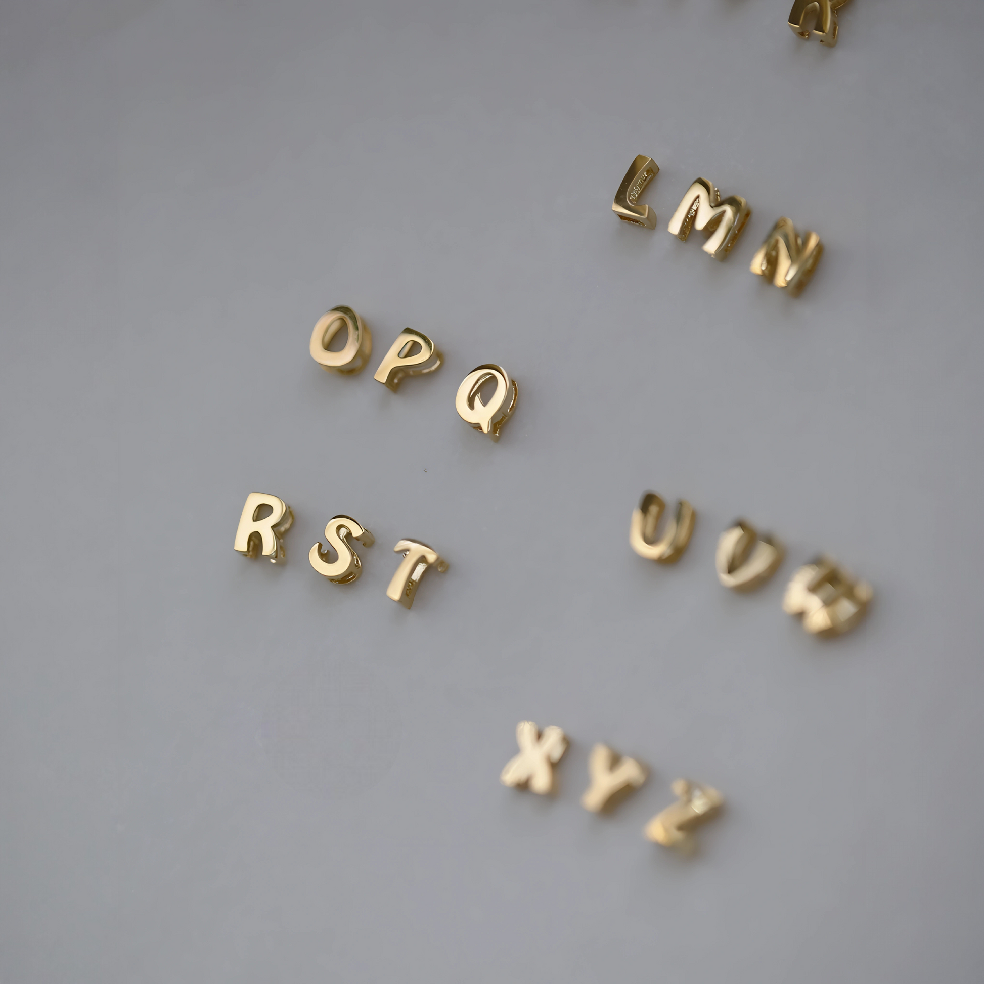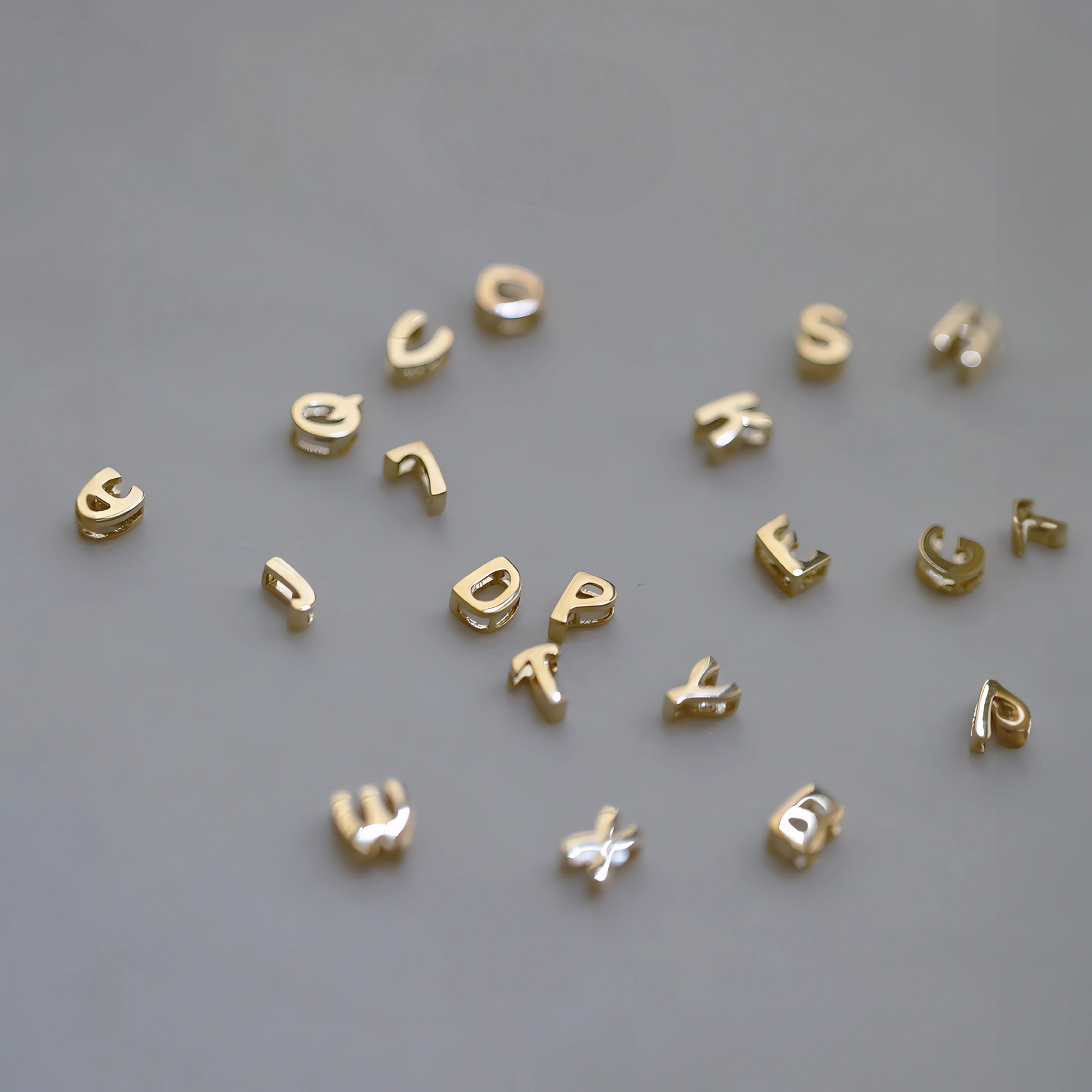 14K Gold Minimal Dainty 26 alphabet Letter Name Initial Pendant D.I.Y Charm