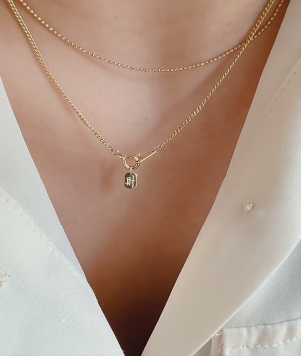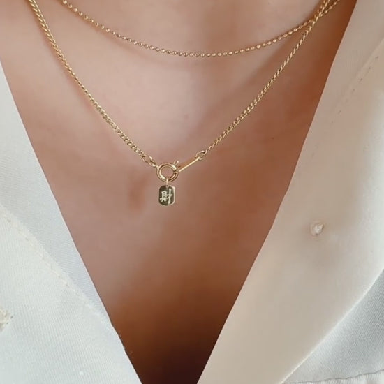 Crafted in 14K gold, this delicate pendant merges minimalist design with meaningful symbolism. The Chinese characters "发财" (bringing wealth) and "福" (fortune) are rendered in refined detail, making it an ideal standalone piece or customizable charm for your jewelry collection. Perfect for those seeking understated elegance with cultural significance, this pendant carries timeless appeal and serves as a personal talisman for prosperity and good fortune.