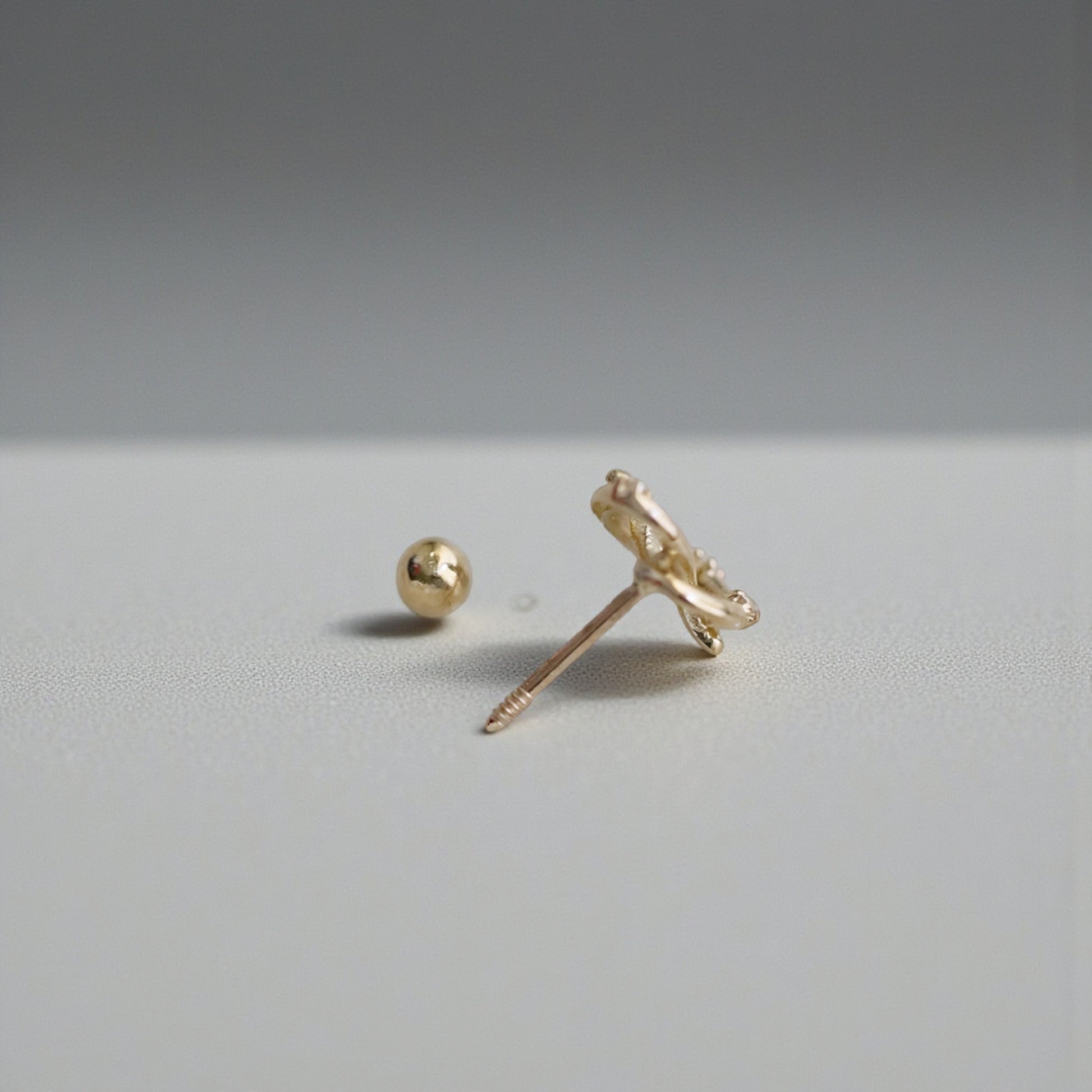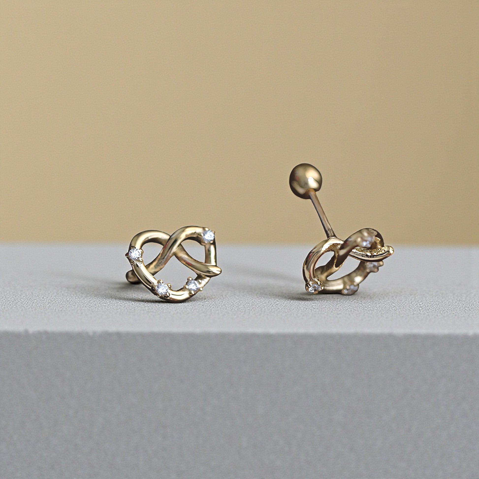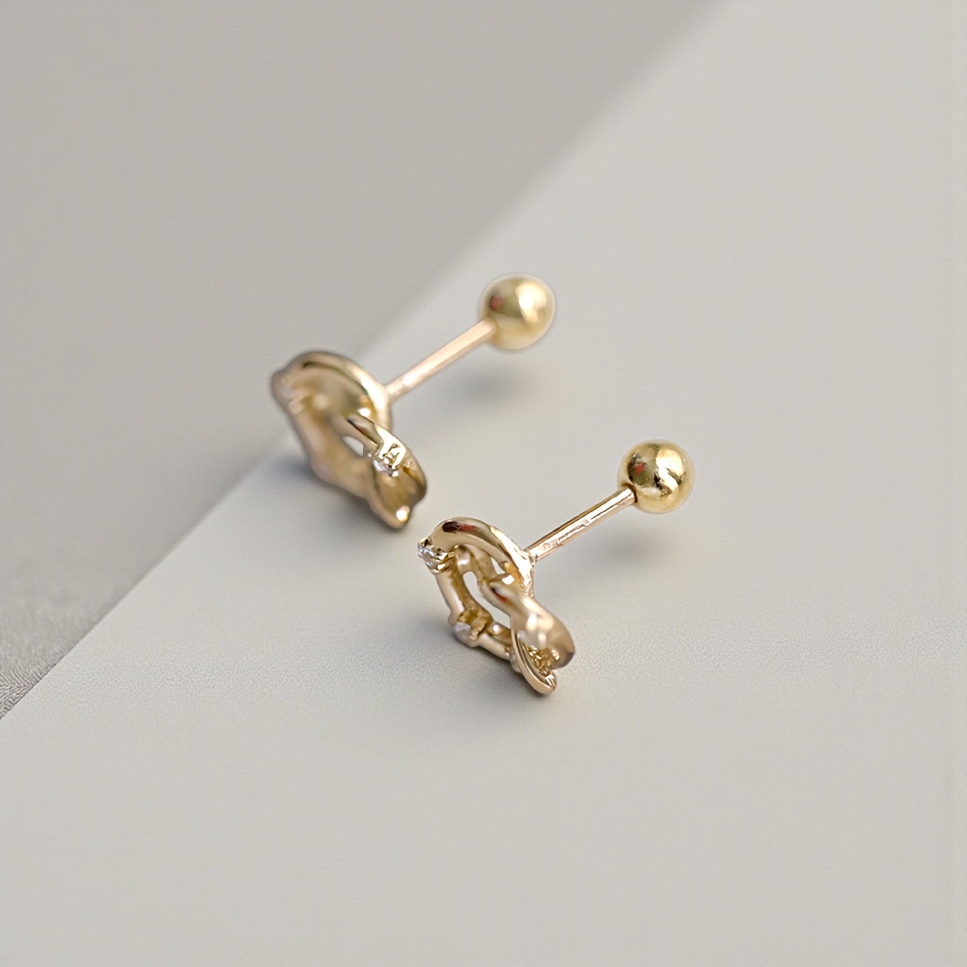 9k Gold Simple Minimal Dainty Lucky Cute Zircon Pretzel Screw Earrings