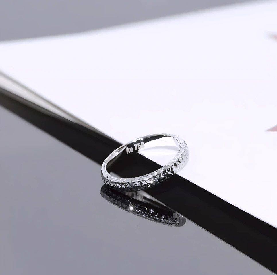 Genuine 18K Yellow Gold Rose Gold Carved Pattern Surface Band Ring