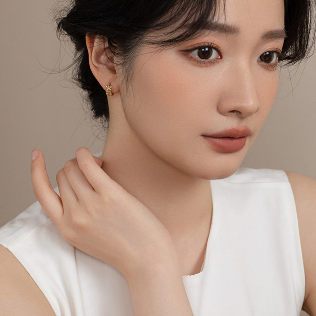 Gypsophila 18K Gold Sparkle Luxurious Hoop Earring