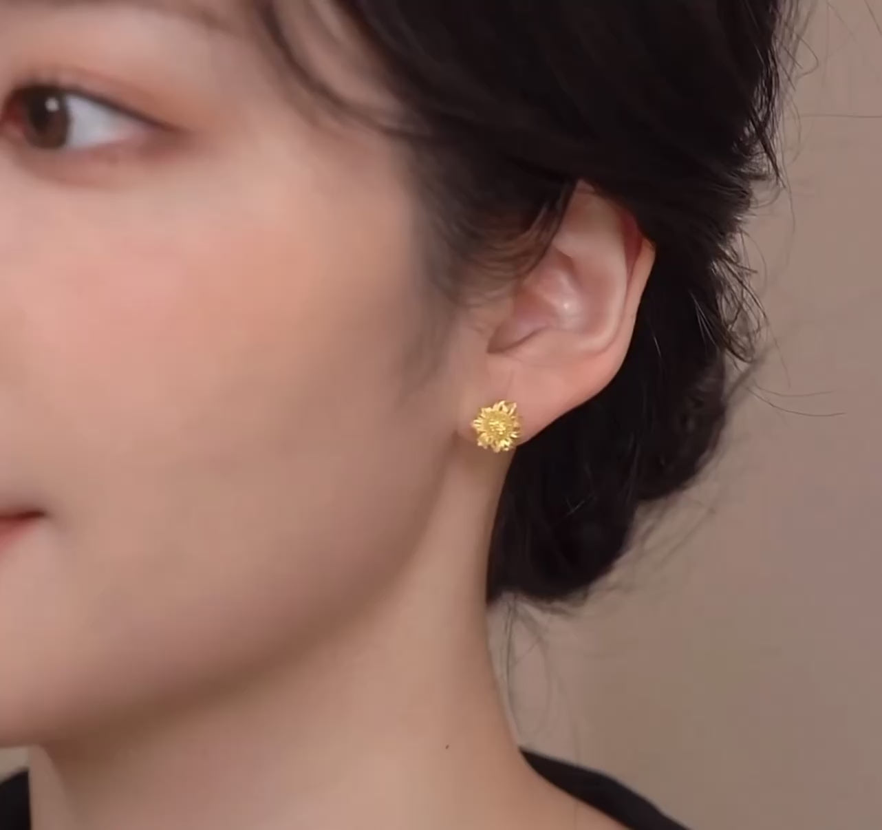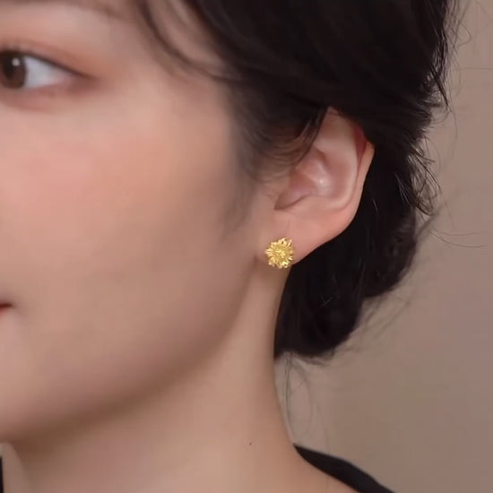 24K Real Gold Van Gogh Sunflower Stud Gold Earrings
